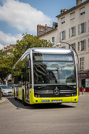 IDELIS et Pau Béarn Pyrénées Mobilités ont fait le choix d'un mix énergétique H²/électrique efficace et adapté. 19 bus hybrides complétent l'offre de transport à faible émission